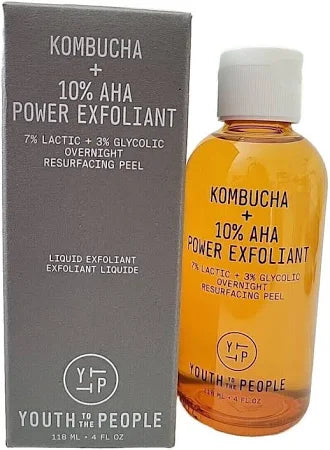 html Youth to the People Kombucha + 10% AHA Power Exfoliant Experience the transformative power of Youth to the People Kombucha + 10% AHA Power Exfoliant. This overnight treatment is designed to refine and renew your skin, leaving it smooth and radiant. 10% AHA blend for effective exfoliation Kombucha and tree bark ferment for skin clarity Hydrates and smooths skin texture Overnight treatment for convenience Suitable for all skin types Apply a thin layer to clean skin at night, avoiding the eye area. Do not rinse. Use 2-3 times per week. Key Ingredients: 10% AHA (7% Lactic, 3% Glycolic), Kombucha Black Tea Ferment, Tree Bark Ferment, Hyaluronic Acid, Vitamin C Brand: Youth to the People Size: 1.0 fl oz / 30 ml Category/Product Type: Beauty & Personal Care Formulation: Liquid Country of Origin: USA We ship all orders Monday through Friday. Orders placed before 12 PM PST ship the same day. Limited quantities available, order while in stock.